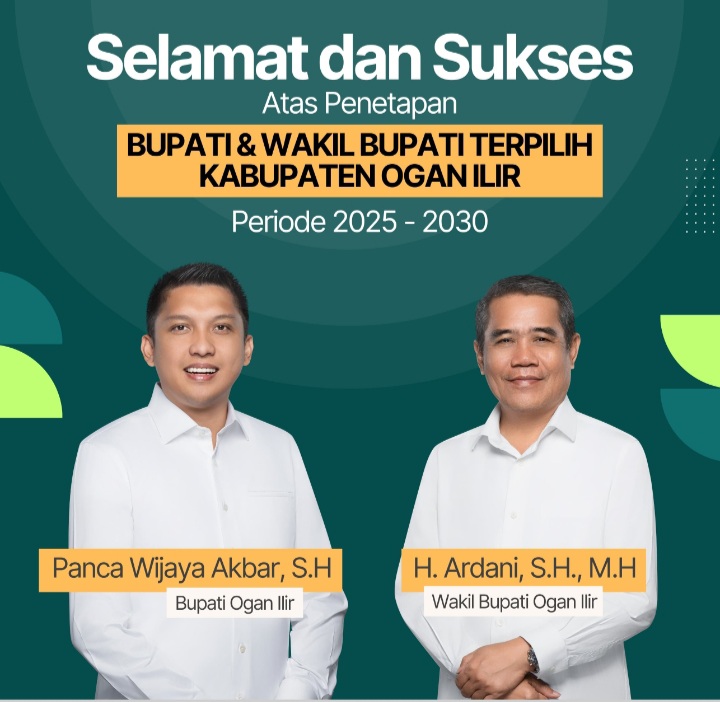 Ogan Ilir, Sumatera Selatan – DPC Persatuan Pewarta Warga Indonesia (PPWI) Kabupaten Ogan Ilir mengucapkan selamat atas penetapan hasil pleno KPU Ogan Ilir yang menetapkan Panca Wijaya Akbar, SH sebagai Bupati dan H. Ardani, SH, MH sebagai Wakil Bupati Ogan Ilir periode 2025-2030.