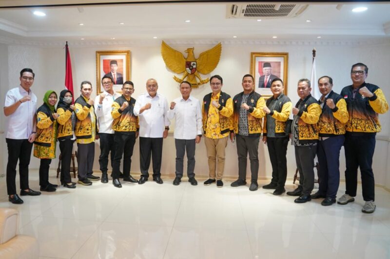 Jakarta: Menteri Pemuda dan Olahraga Republik Indonesia (Menpora RI) Zainudin Amali menerima audiensi Ketua Umum Pengurus Besar Persatuan Boling Indonesia (PB PBI) Dr. Jerry Sambuaga dan jajarannya di ruang kerjanya di lantau 10, Gedung Graha Pemuda, Kemenpora, Senayan, Jakarta Pusat, Senin (13/2).