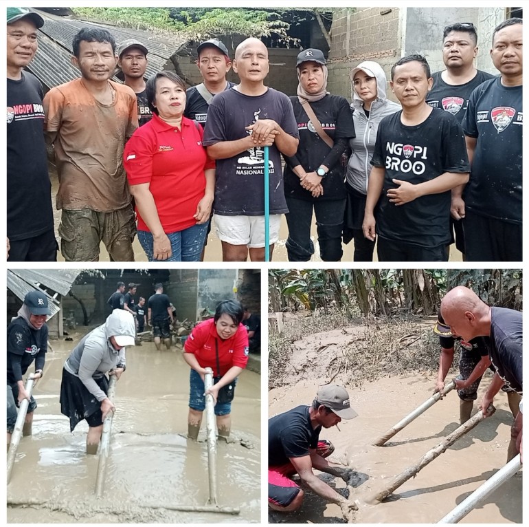Hal ini terlihat saat Komunitas Ngopi Broo dan AWIBB bersama masyarakat sekitar bergotong royong membersihkan sisa banjir lumpur, di wilayah RT 007/002 No. 111, Kelurahan Teluk Pucung, Kecamatan Bekasi Utara, Kota Bekasi.