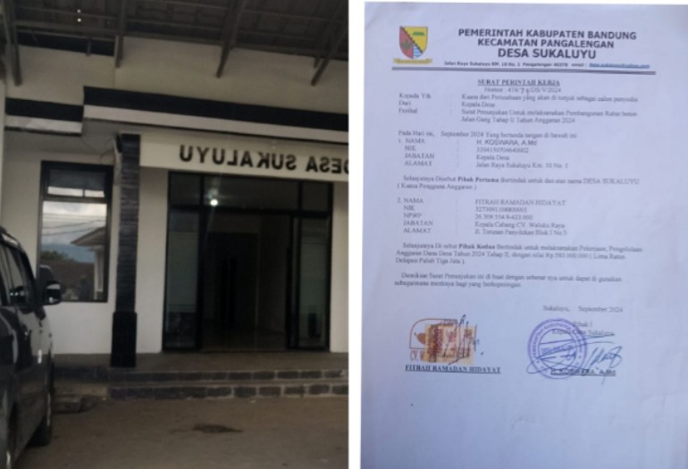 Koswara disebut telah menunjuk CV Waluku Raya sebagai pelaksana proyek senilai Rp583 juta melalui SPK resmi bernomor 474/74/DS/V/2024. Penunjukan ini dinilai bertentangan dengan Permendagri No. 20 Tahun 2018 yang secara eksplisit mengatur bahwa proyek fisik dari Dana Desa harus dikerjakan secara swakelola oleh masyarakat desa.