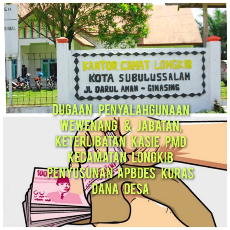 Subulussalam | Rabu, 11 Juni 2025 – Dugaan praktik penyalahgunaan jabatan kembali mencuat di lingkungan pemerintah kecamatan, kali ini melibatkan Kasi Pemberdayaan Masyarakat dan Desa (PMD) Kecamatan Longkib, Kota Subulussalam. Oknum berinisial Awaludin diduga terlibat dalam praktik pungutan liar (pungli) terkait pembuatan Anggaran Pendapatan dan Belanja Desa (APBDes), dengan menerima bagian dari pembayaran yang menggunakan dana desa.