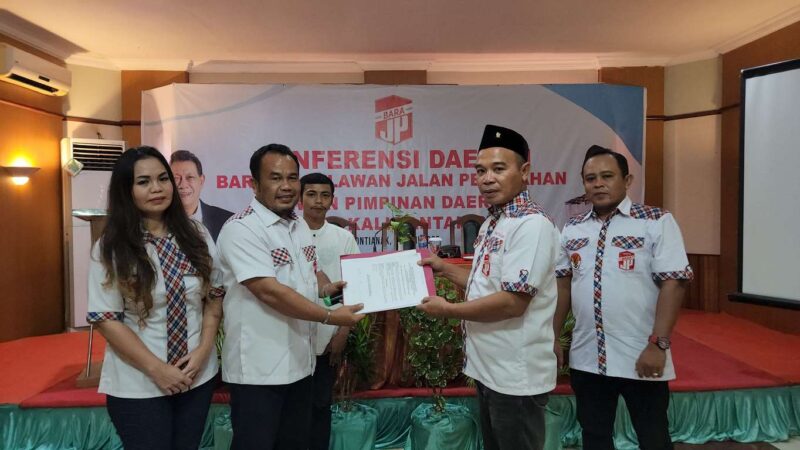 Pontianak, Kalbar — Ketua OKK DPP Bara JP, Boy Nababan, secara resmi menetapkan Sarmianus Senky sebagai Ketua Dewan Pimpinan Daerah (DPD) Bara JP Kalimantan Barat periode 2025–2030. Penetapan tersebut dilakukan pada Kamis, 12 Juni 2025, dalam acara Konferensi Daerah (Konferda) yang digelar di Aula Bengkirai Hotel Kapuas Dharma, Pontianak.