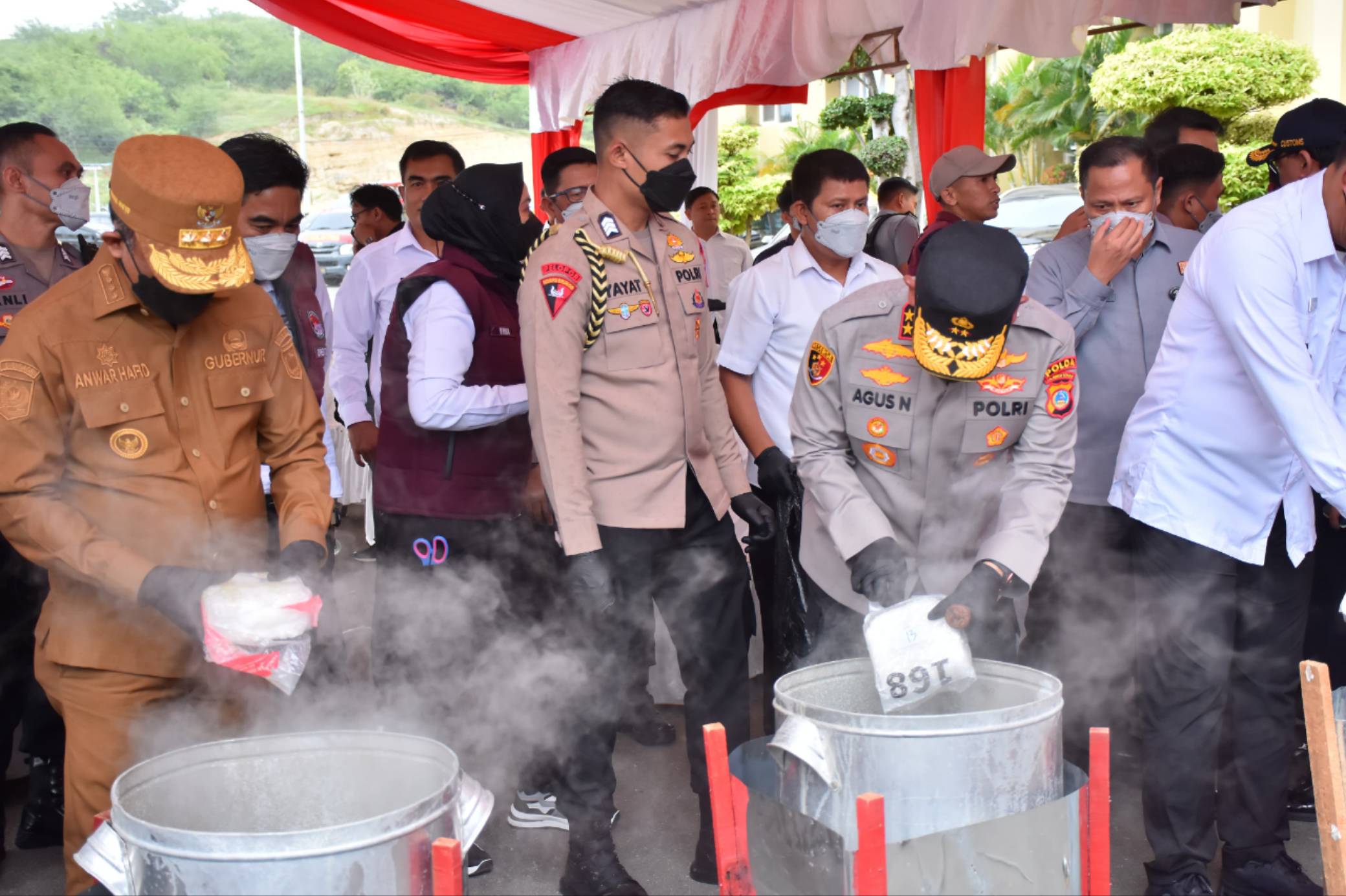 PALU, Kapolda Sulawesi Tengah (Sulteng) Irjen Pol Dr. Agus Nugroho memimpin pelaksanaan pemusnahan barang bukti narkotika jenis sabu sebanyak kurang lebih 40 kilogram (Kg) di Markas Komando Polda Sulteng Jalan Soekarno Hatta Palu, Senin (30/6/2025)