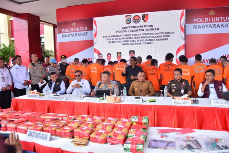 Pemusnahan barang bukti narkotika sabu sebanyak 40 kg turut dihadiri Gubernur Sulawesi Tengah Dr. Anwar Hafid, Kepala Kejaksaan Tinggi Sulteng, Kepala BNN Provinsi Sulteng, Kepala Pengadilan Tinggi Sulteng, Kepala Balai POM Palu, Kepala Pengawasan dan Pelayanan Bea Cukai Pantoloan Palu, Tokoh masyarakat dan pejabat utama Polda Sulteng.