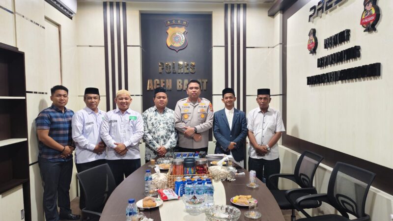 MEULABOH – Pengurus Cabang Nahdlatul Ulama (PCNU) Kabupaten Aceh Barat menggelar silaturrahmi dengan Kepala Kepolisian Resor (Kapolres) Aceh Barat, di Mapolres setempat, Rabu 13/8/2025). Kegiatan yang berlangsung diruang kerja Kapolres ini bertujuan memperkuat sinergi antara ulama, tokoh masyarakat, dan aparat kepolisian dalam menjaga keamanan serta ketertiban di wilayah Aceh Barat.