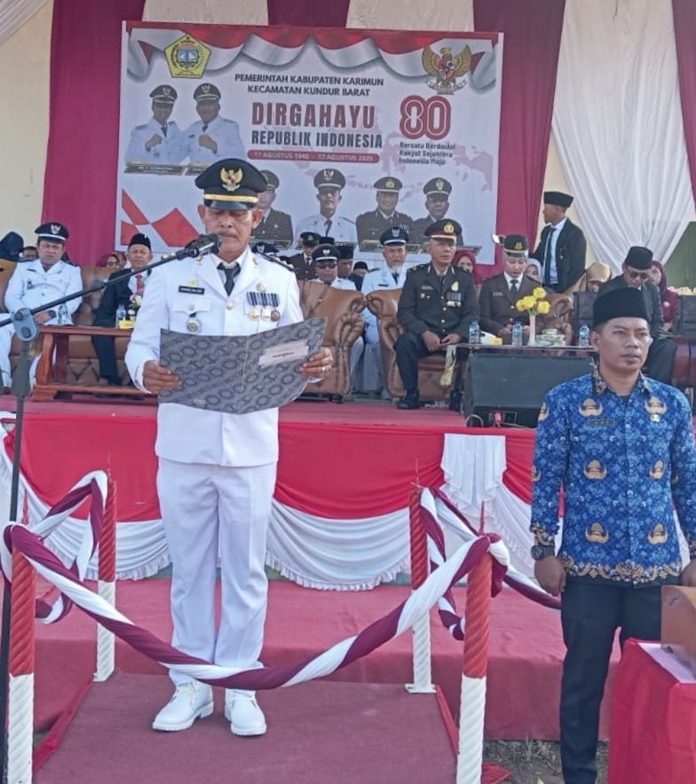 Karimun / Kepulauan Riau. – Dalam rangka memperingati Hari Ulang Tahun ke-80 Kemerdekaan Republik Indonesia, Pemerintah Kecamatan Kundur Barat laksanakan upacara pengibaran bendera Merah Putih di lapangan Kantor Camat Kuba , Minggu (17/8/2025).