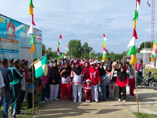 Selama kegiatan berlangsung, tampak masyarakat memadati tempat acara digelar dengan penuh semangat dan antusias mengikuti baik permainan rakyat maupun jalan sehat.