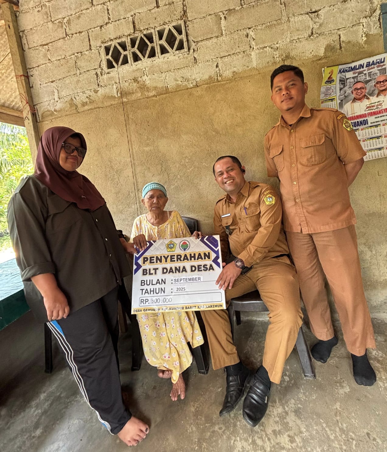 Karimun / Kepri. – Pemerintah Desa (Pemdes) Gemuruh menyerahkan Bantuan Langsung Tunai (BLT) Dana Desa (DD) tahun 2025 kepada 30 KPM untuk bulan September 2025 yang dilakukan di rumah masing-masing penerima warga Desa Gemuruh Kecamatan Kundur Barat pada Senin (08/9/2025).