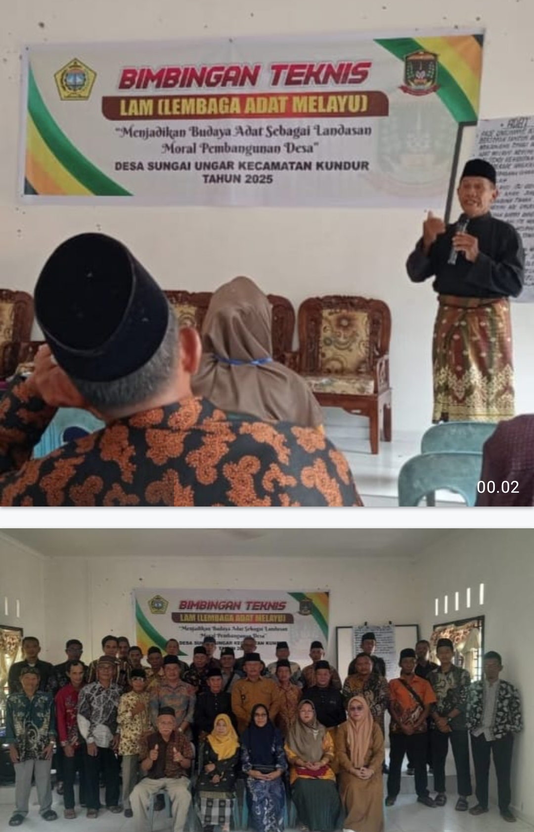 Kegiatan yang dibuka oleh Camat Kundur H. Sumiran, S.Km., M.M., ini mengundang narasumber yaitu Ketua Lembaga Adat Melayu (LAM) Kundur H. Umar Djaafar yang dihadiri Ketua BPD dan perangkat Desa serta Tokoh Masyarakat, Tokoh Adat dan Tokoh Pemuda.