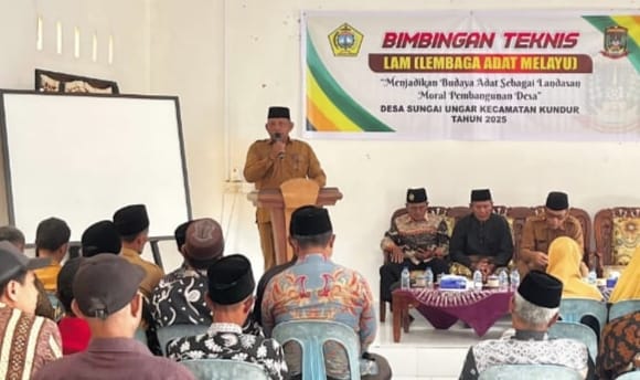 Kegiatan yang dibuka oleh Camat Kundur H. Sumiran, S.Km., M.M., ini mengundang narasumber yaitu Ketua Lembaga Adat Melayu (LAM) Kundur H. Umar Djaafar yang dihadiri Ketua BPD dan perangkat Desa serta Tokoh Masyarakat, Tokoh Adat dan Tokoh Pemuda.
