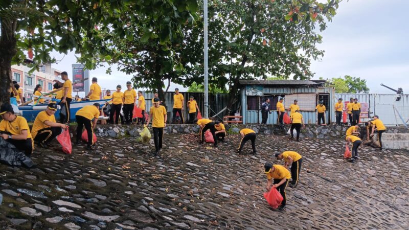 Sebanyak lebih dari 1.000 personel kepolisian dikerahkan untuk menyisir sampah di sepanjang Jalan Boulevard 1 hingga kawasan Megamas Manado.
