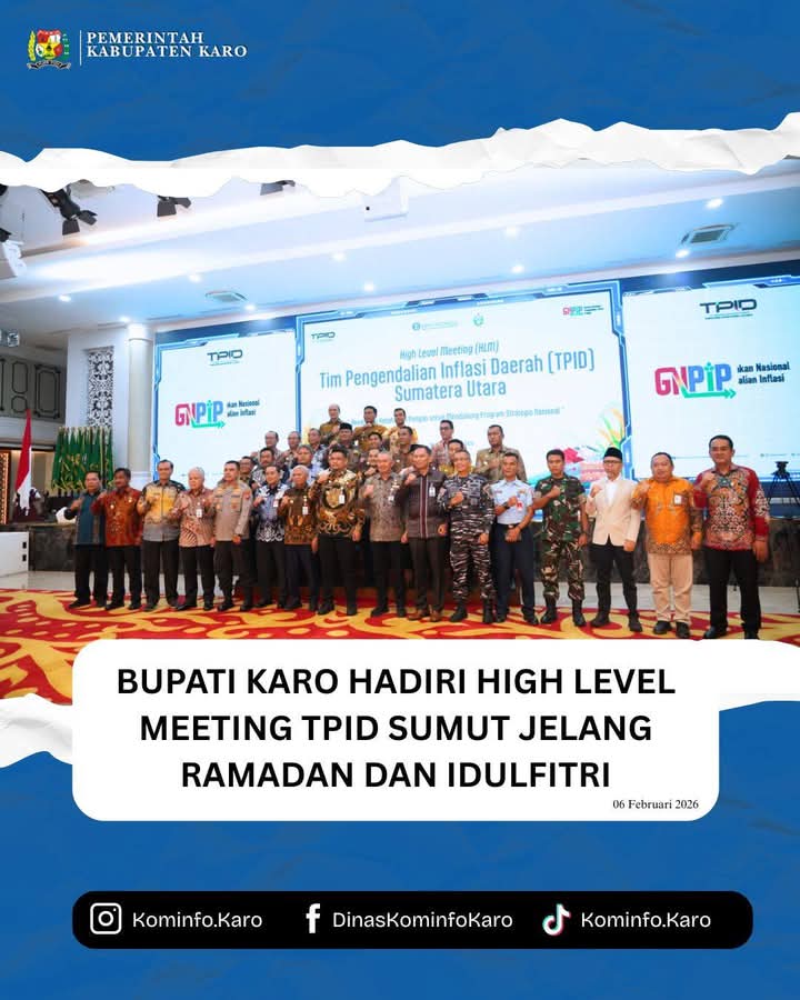 Liputan 1 Net. Medan – Bupati Karo, Brigjen Pol (Purn) Dr. dr. Antonius Ginting, Sp.OG., M.Kes., menghadiri High Level Meeting Tim Pengendali Inflasi Daerah (TPID) Provinsi Sumatera Utara yang dipimpin langsung oleh Gubernur Sumatera Utara, Muhammad Bobby Afif Nasution, di Aula Raja Inal Siregar, Medan, Jumat (6/2/2026).
