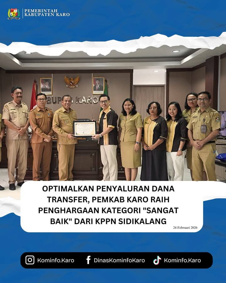 Dalam pertemuan yang berlangsung di ruang kerja Bupati (Selasa, 24/02/2026), Bupati Karo menyampaikan apresiasi setinggi-tingginya kepada seluruh jajaran OPD di lingkungan Pemerintah Kabupaten Karo yang telah bekerja keras memastikan dana transfer tersalurkan dengan tepat waktu dan tepat sasaran.