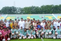 Sidoarjo: Menteri Pemuda dan Olahraga (Menpora) RI Dito Ariotedjo mendampingi Presiden Prabowo Subianto pada acara Peresmian 17 Stadion di Seluruh Indonesia secara simbolis yang…